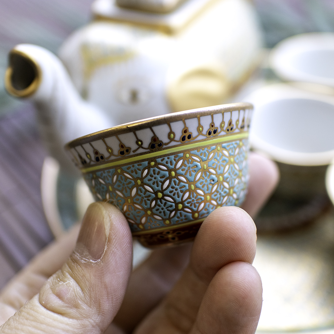 ベンジャロン焼きは、タイ王室御用達として作り始められた高級磁器。高級感溢れる質感、エレガントなデザインが魅力のティーセットです。ひと味もふた味も違った休日のティータイムはいかがでしょうか?