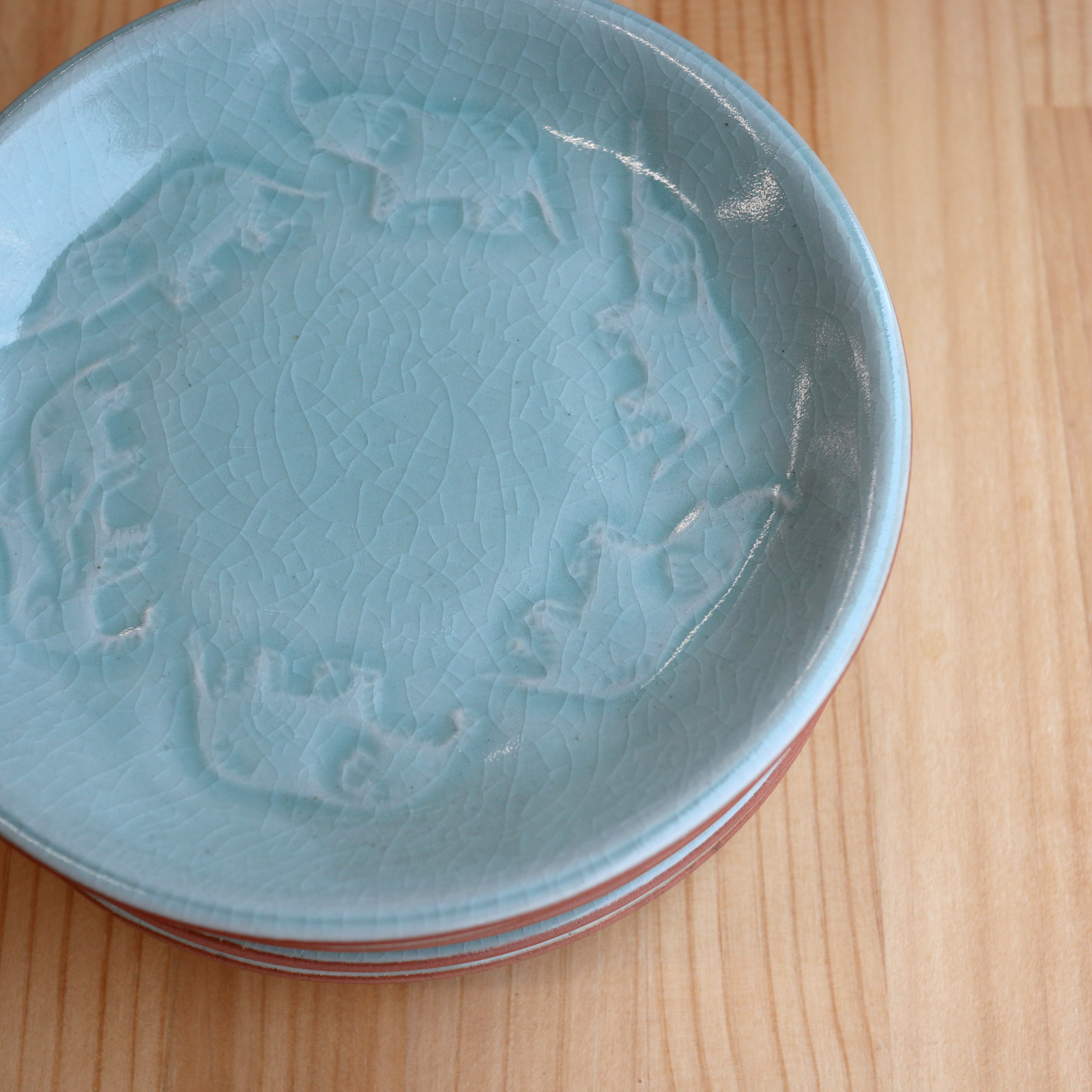 【アウトレット】【セラドン焼き】ゾウモチーフの丸皿(17.5cm)
